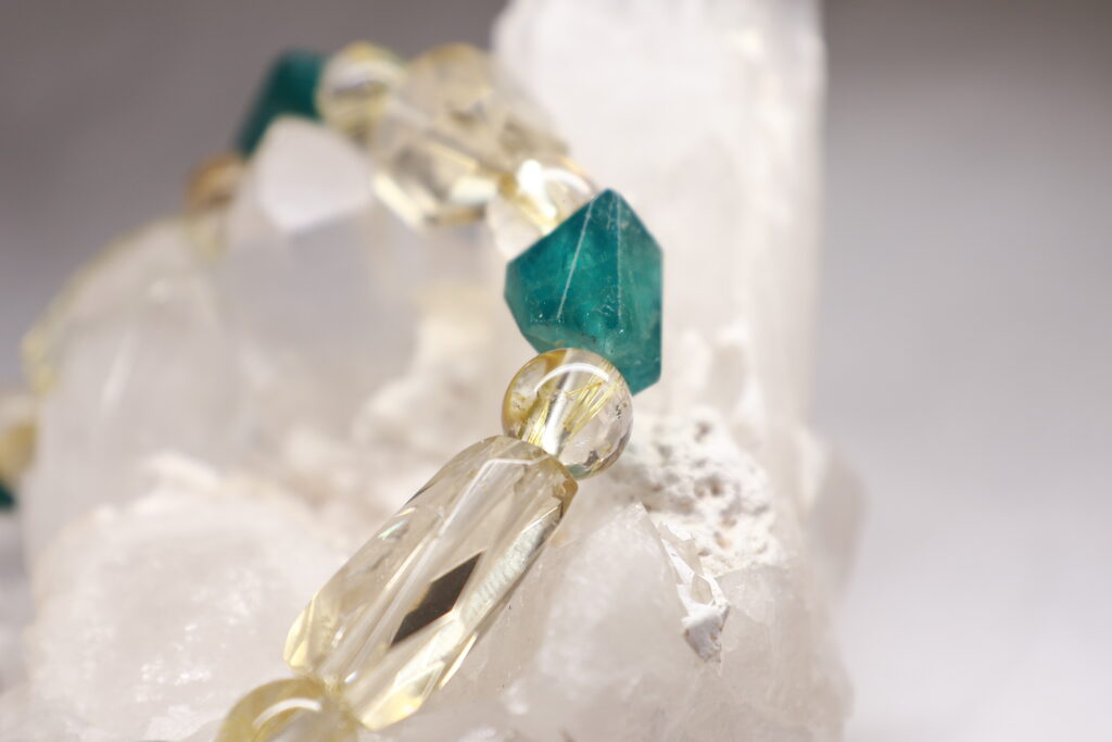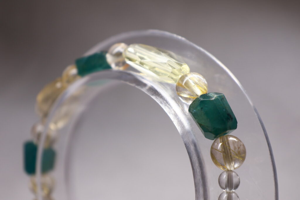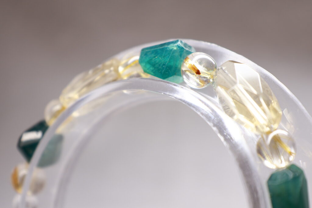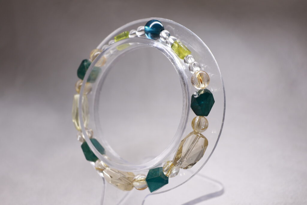 この石が3粒入ることで、ブレスレット全体に明るさが生まれる。
