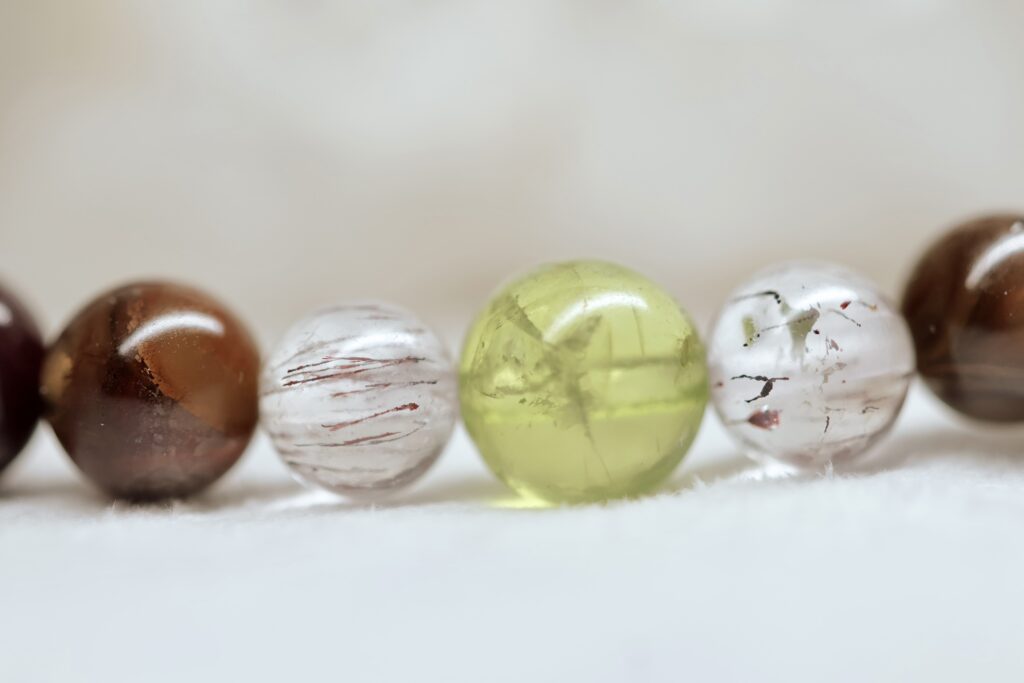 ペリドット/ファイナルグレードピジョンブラッドルビー/国産おのころ水晶(国産みの神)/オーラライト23/ガーネット/ブラックスーパーセブン/モリオン