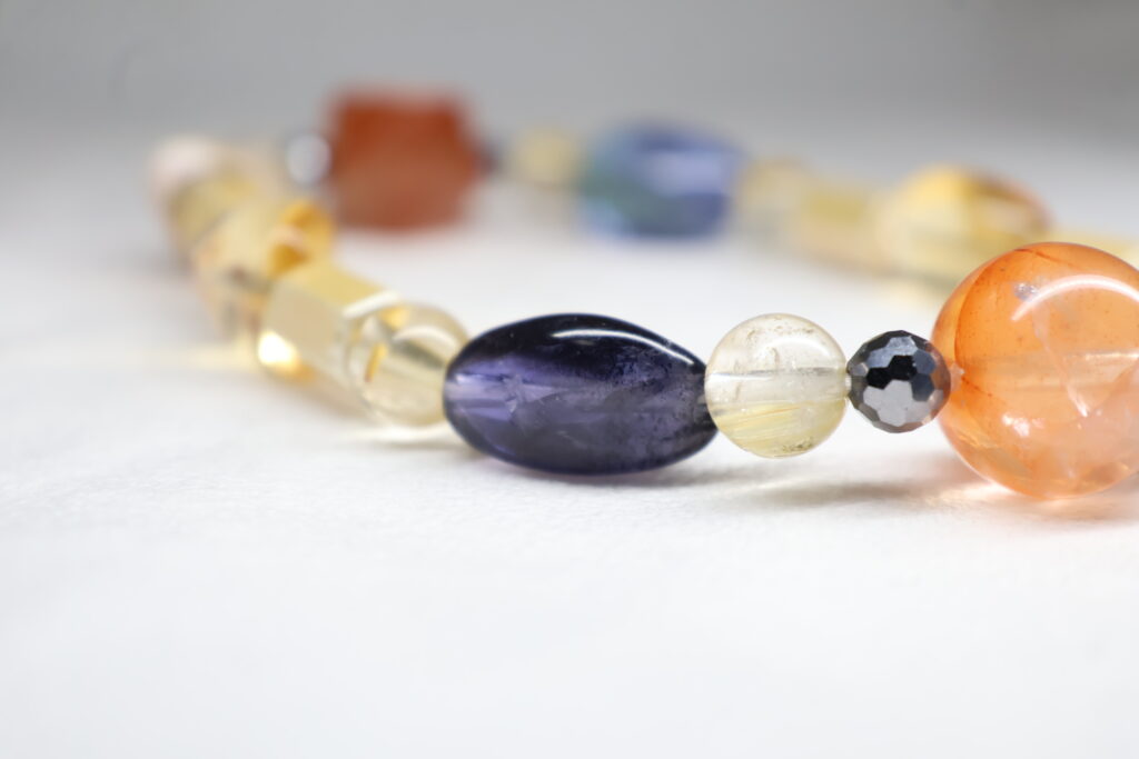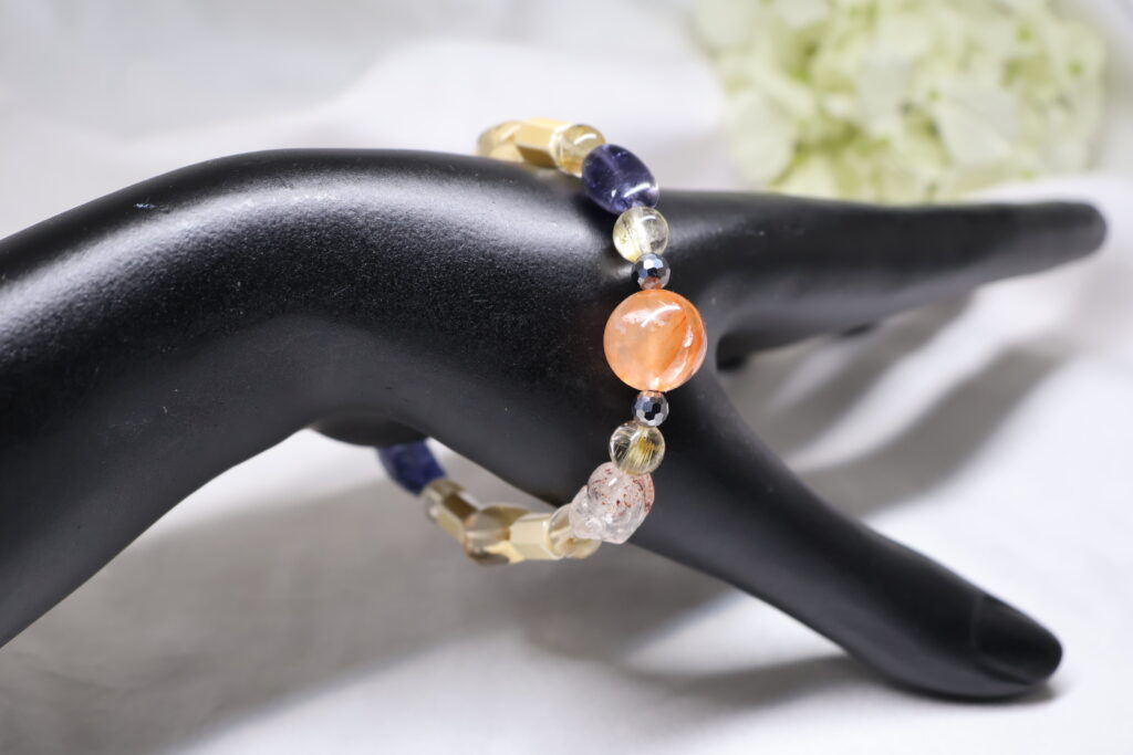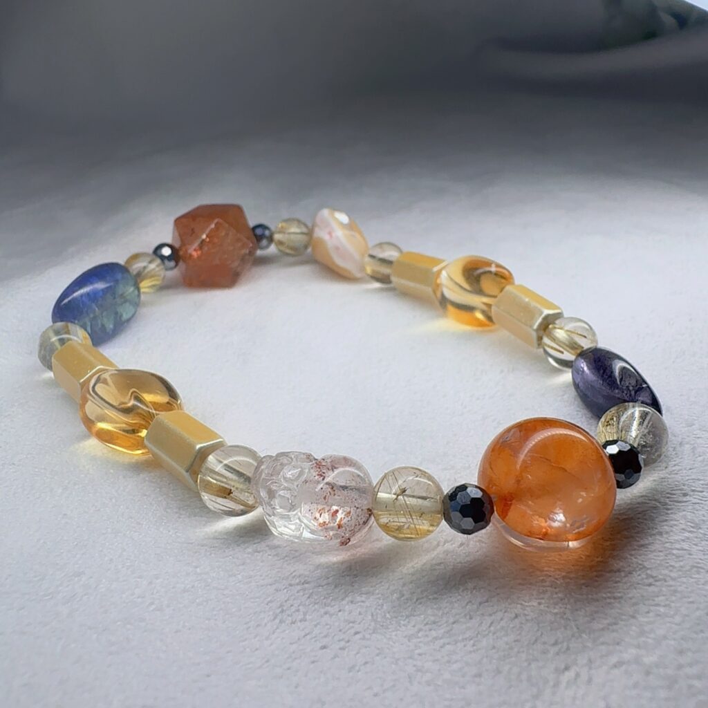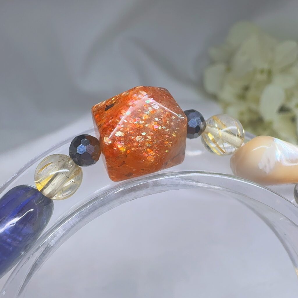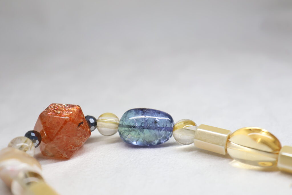 ファイアクォーツ(貔貅)/キャッツアイルチルクォーツ/オレンジオーロラクォーツ(リモナイトインクォーツ)/イリュージョンサンストーン/タンザナイト/アイオライト/磁気入りヘマタイト(ライトイエロー)/テラヘルツ/シトリン/ミルクティーマザーオブパール