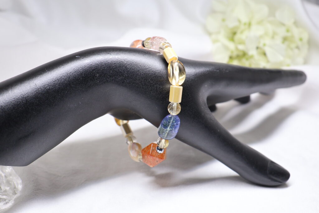 ゴールド系の石を多めに入れて、全体を「お金が巡る」イメージで統一しましたよ。