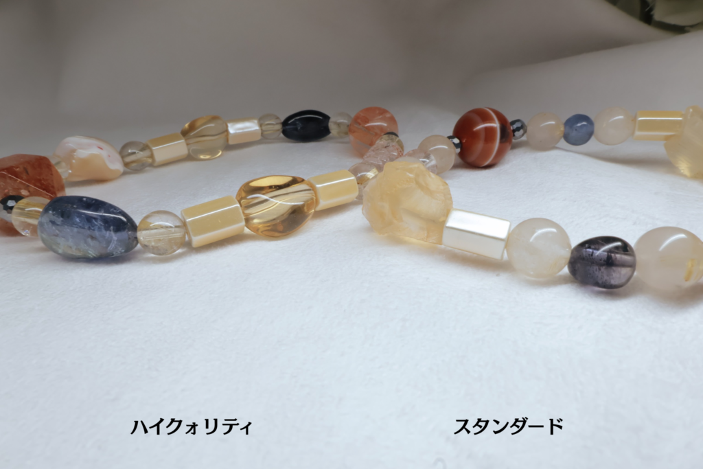 今回は磁気入りヘマタイトとテラヘルツを入れて、健康ブレスとしての機能も持たせた。