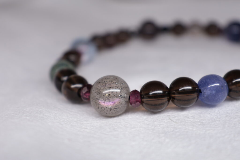このブレスレットには、強力な石がたくさん入っている。 そのエネルギーを、地に足をつけて使うために。